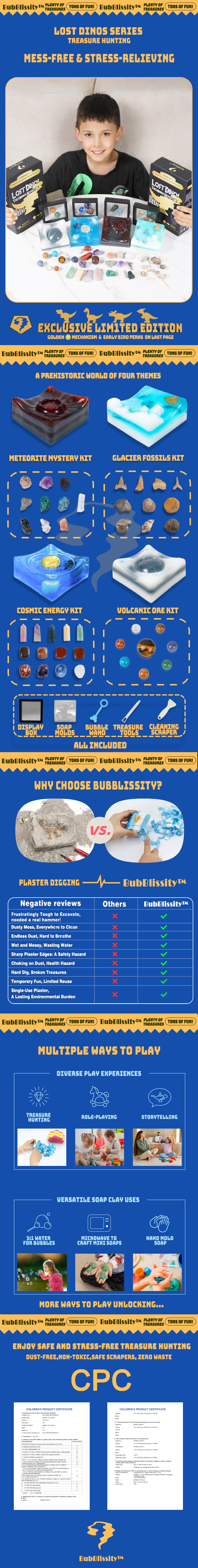 A Journey into Prehistoric Mysteries! Embark on an exciting adventure back in time with our four themes: Volcanic Ore, Glacier Fossils, Cosmic Energy, and Meteorite Mystery. Each theme offers a unique exploration experience, perfect for curious minds.